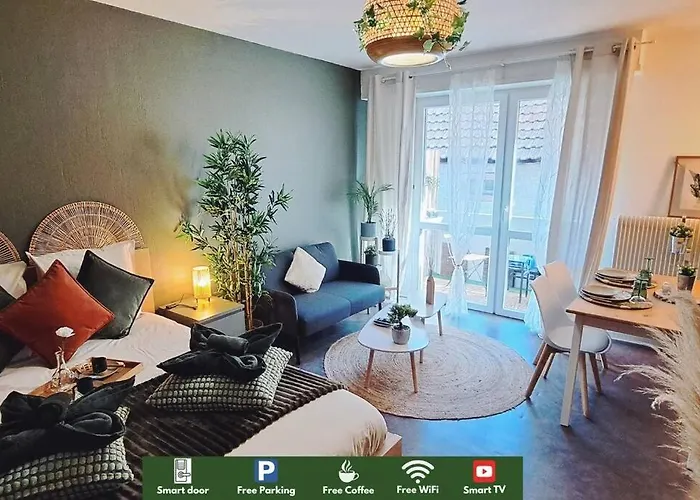 A Petit Cocon Nature Centre-Ville apartman kínál egy teljesen felszerelt konyhát, valamint szobákat erkéllyel, síkképernyős műholdas TV-vel és füstérzékelőket. Az apartman gyalog 5 percre van a Musée Unterlinden területétől, és hozzáférést biztosít az Old Town térségéhez.